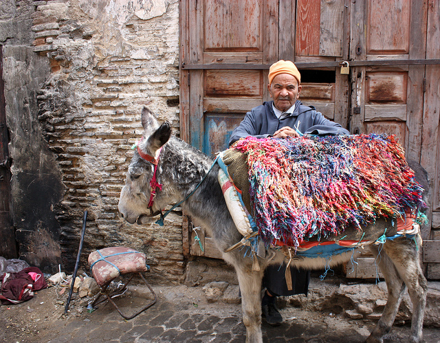 Campesino de Fes y su colorido burrito